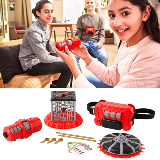 Escape rooms are wildly popular across the globe right now – whether your kids have tried one for themselves or not, they’ll have a blast with this at-home variation that combines the thrill of racing against the clock with a series of luck and skill-based challenges. The aim is simple: Unlock a kidnapped team member (who has a belt with a combination lock strapped to them). First, you have to retrieve a key from a cage using a pair of sticks, second, you have to solve a series of problems to access another key, and finally, you have to try and enter the correct key into a device and spin it – they then have three chances to try and find the key again or else they have to start that task over…all while the timer counts down! Designed for ages 6+, this is a fun game that challenges the kids’ brains while they indulge their inner super sleuth.