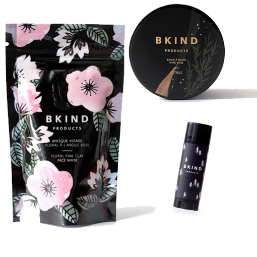 - BKIND Citrus Hand Balm, Forest Lip Balm, and Pink Clay Face Mask
