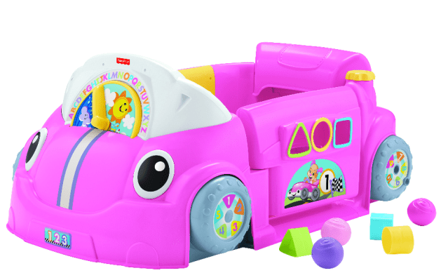 This stationary car is almost too cute for words, whether you buy it in blue or pink! Not only is it adorable, it’s loaded – and I mean loaded – with features to spark your kids curiosity. With 75 built-in songs and phrases to fuel their learning, this is another toy in the Fisher-Price Smart Stages line-up, meaning it can be adapted as your kids intellect evolves, all the way from six to eighteen months! Honk the horn, use the wipers, shift gears, turn on lights and more – even if the destination is your living room, this is yet another creative role playing way for your kid to be just like mom and dad, just hopefully without any wee-sized road rage.