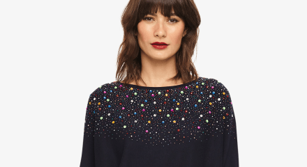 I’ve been perusing the racks for some holiday finery and I love love love this embellished sweater trend – so much so I had to share it with y’all.