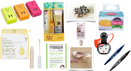 Filed under All That Glitters, Beauty & The Best, Body Break, Food For Thought, Tech Tok, Walk This Way · Tagged with $10 & Under, 100% Pure, Beauty, Brooches, Burt's Bees, Cake, Candy, Charger, Chocolates, Cosmetics, Etsy, Eyeliner, Gadgets, Gifts Under $10, Hexagon Inc., Highlighter, imPRESS, Jewelry, Kaia Naturals, Kiss Nail Dress, Lip Gloss, Maybelline, Nails, Natural Beauty, Nestlé, Orange Crate Food Co, Pins, Schatzii, Shoes, Skincare, Stocking Stuffers, The Body Shop, Under $10